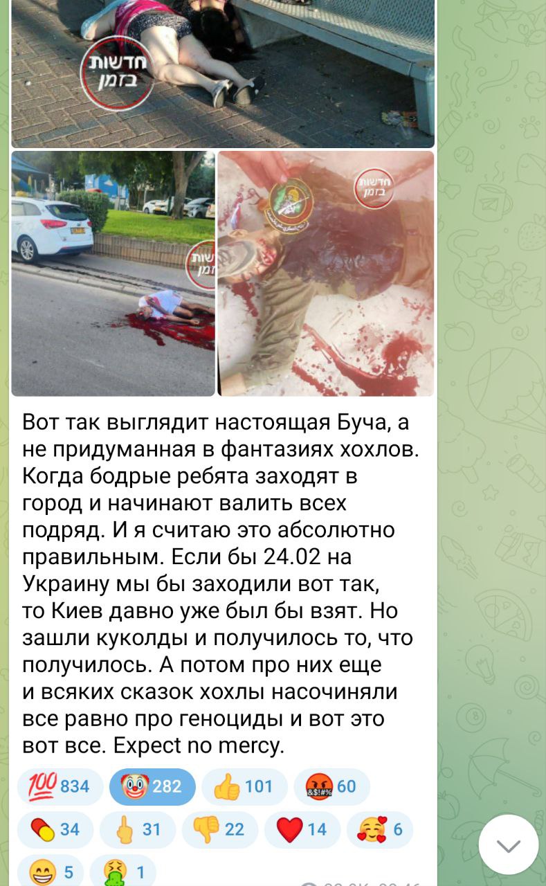 Возникает вопрос, кто им мешал спокойно жить на родине, в Газе своей? Почему они устроили резню соседям?