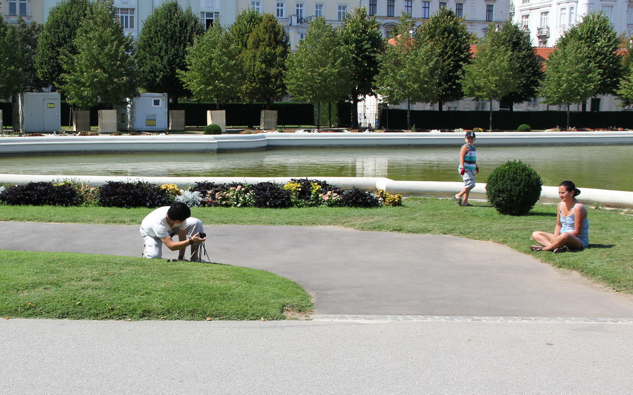 Кстати, замечательная фотография, учитывая что там везде установлены таблички что по траве не ходить, и ходят несколько тетенек это дело конролирующих.