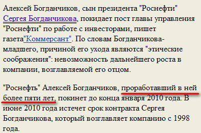 Сначала прочитал заголовок заметки "Сын президента "Роснефти" покинет компанию по "этическим соображениям" и подумал: что за бред? Когда такое было, что чьи-то там сыновья, затья, кумовья и прочие родственники-друганы стеснялись получать мощнейшие должности за счет волосатых лап? Речь идет о России-матушке, конечно. Никогда в жизни у этих ребят не появлялись какие-то "этические соображения" - чай не сыновья Саркози, где за такие штучки папашка с легкостью может слететь из президентов.