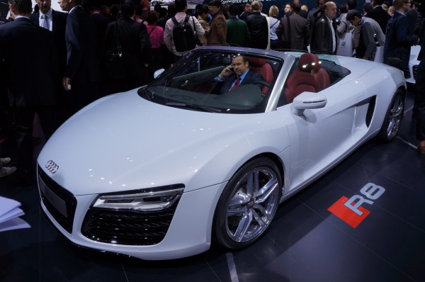 И кабриолет. В котором, наверное, полчаса сидел какой-то мужик и трепался по мобильнику. Ему нравилось тепаться по мобильнику в кабриолете R8 - его это успокаивало.