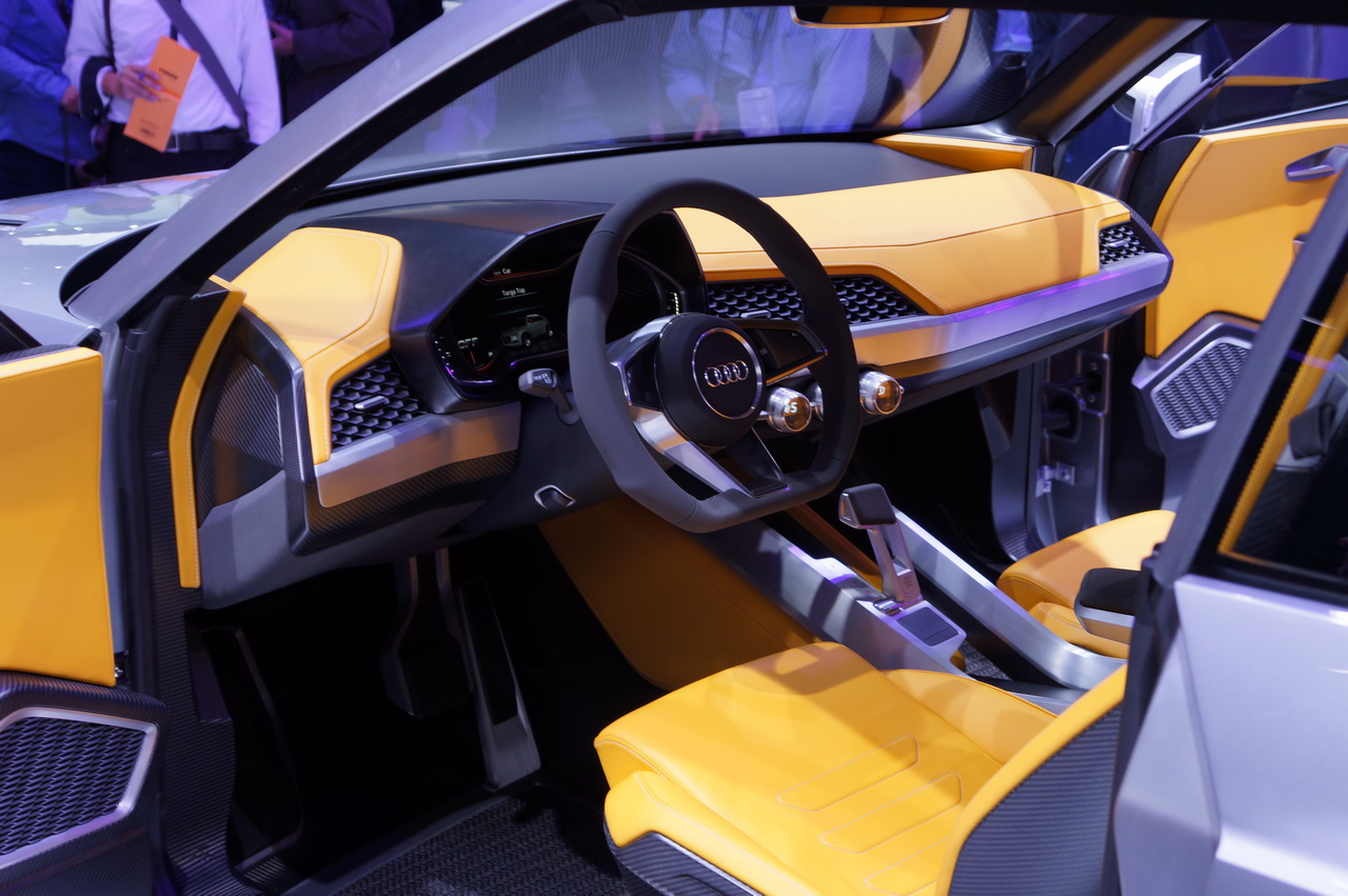 Самым хитом сезона был, конечно, концепт Audi Crosslane Coupe Previews Q2 Crossover. Позиционируется как самый маленький в мире внедорожник, продаваться будет где-то к 2015 году. Интерес к этому концепту был огромный, народ облепил машинку со всех сторон, фотографировать было почти невозможно. Вот хоть что-то.