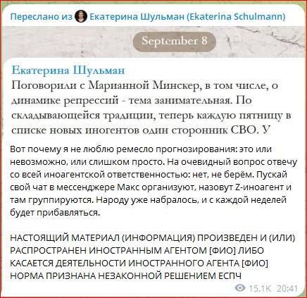 Ждем следующую итерацию. Репрессии к тем, кто раздавал звания «иноагентов»