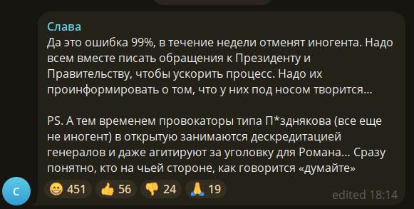 из комментов под его постом про иноагентство (пост, кстати, уже с плашкой)