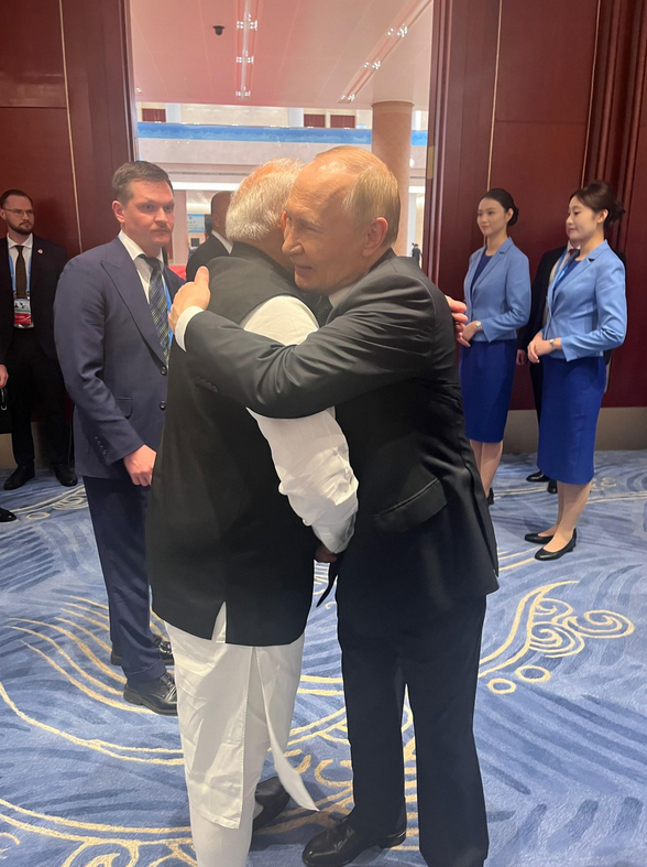 Ось Зла консолидируется, и всё меньше стесняясь явной поддержки друг-друга: Россия, Иран, Северная Корея, всё откровеннее Китай - и вот уже и Индия, кроме закупок нефти ездит на обнимашки. В то время как западные страны по выражению одного блогера "мнут жопу". Но впрочем через две-три недели посмотрим, к чему всё это.