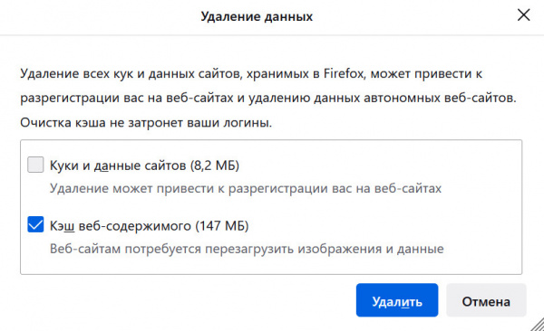 В Firefox - "Настройки - Приватность и защита - Куки и данные сайтов - Удалить данные - Кеш веб-содержимого".