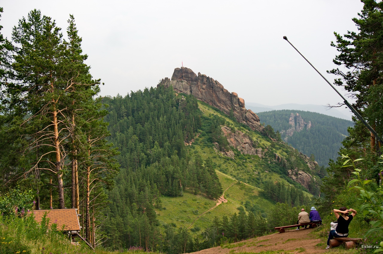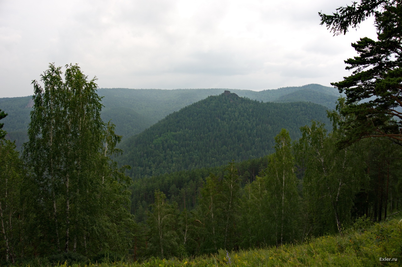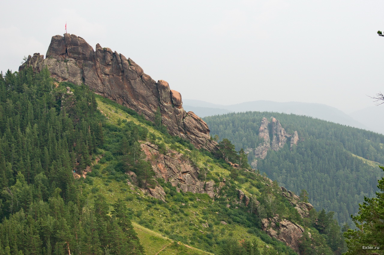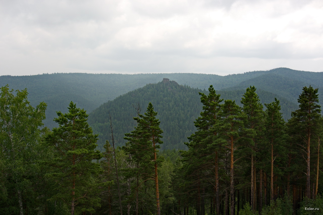 Вон тоже виден какой-то столб на вершине сопки - не знаю, как он называется. Наверное "Величественный уединёнец". Или, например, "Воробушек" - есть там такая скала в пределах видимости. (Подсказали, что это из группы "Воробушек", а конкретно скала называется "Цыпа".)