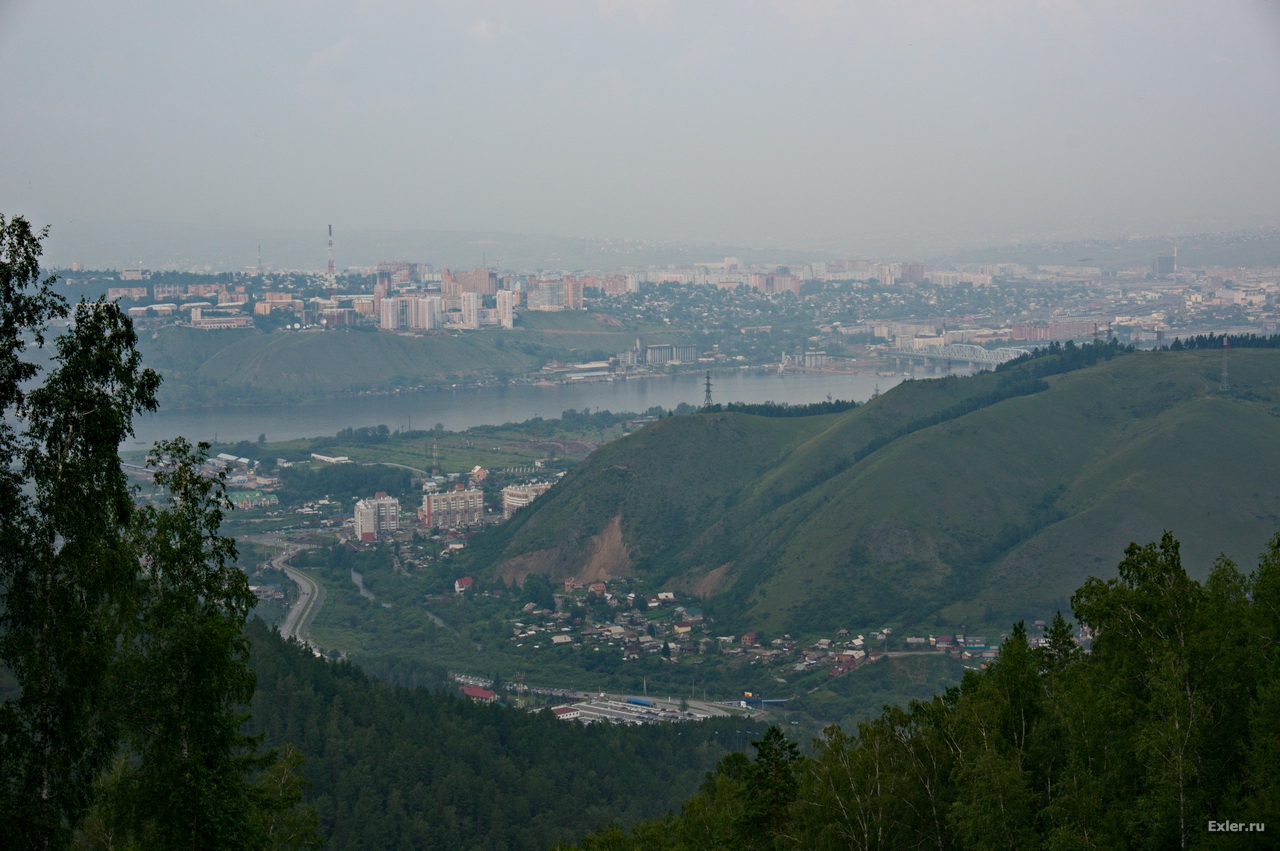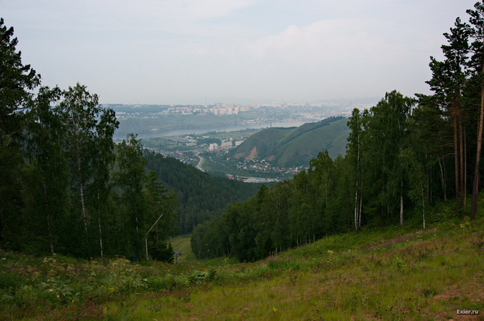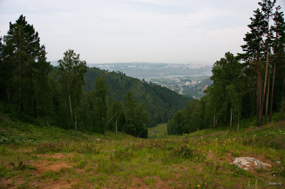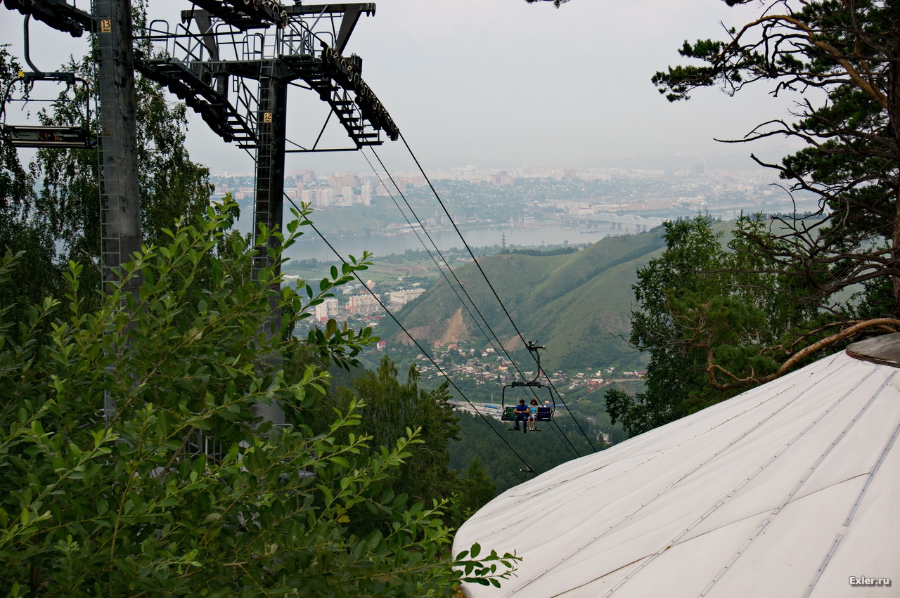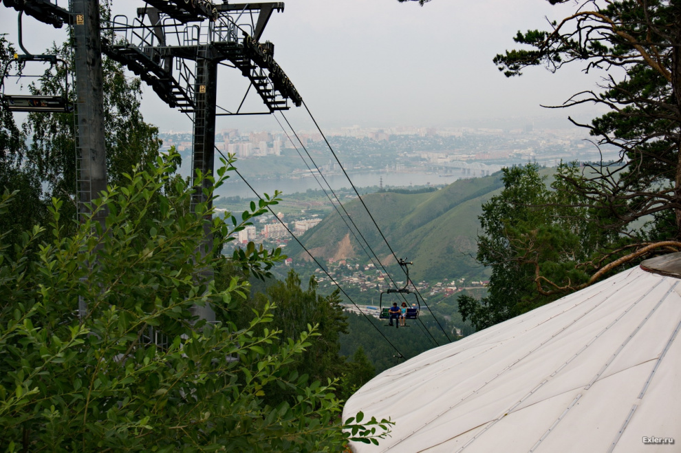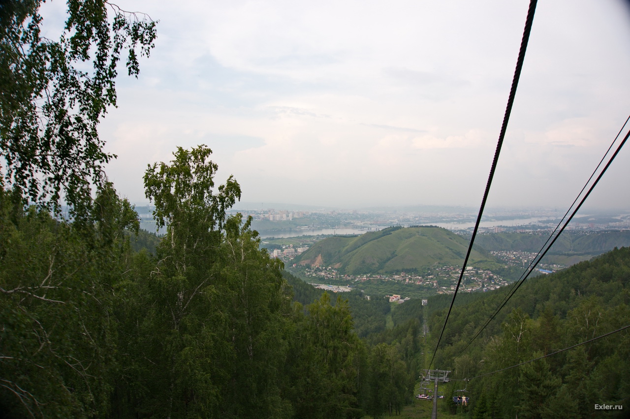 Ну, пора спускаться. Садимся в креслица, отправляемся. Обратно виды значительно колоритнее - хорошо виден Красноярск.