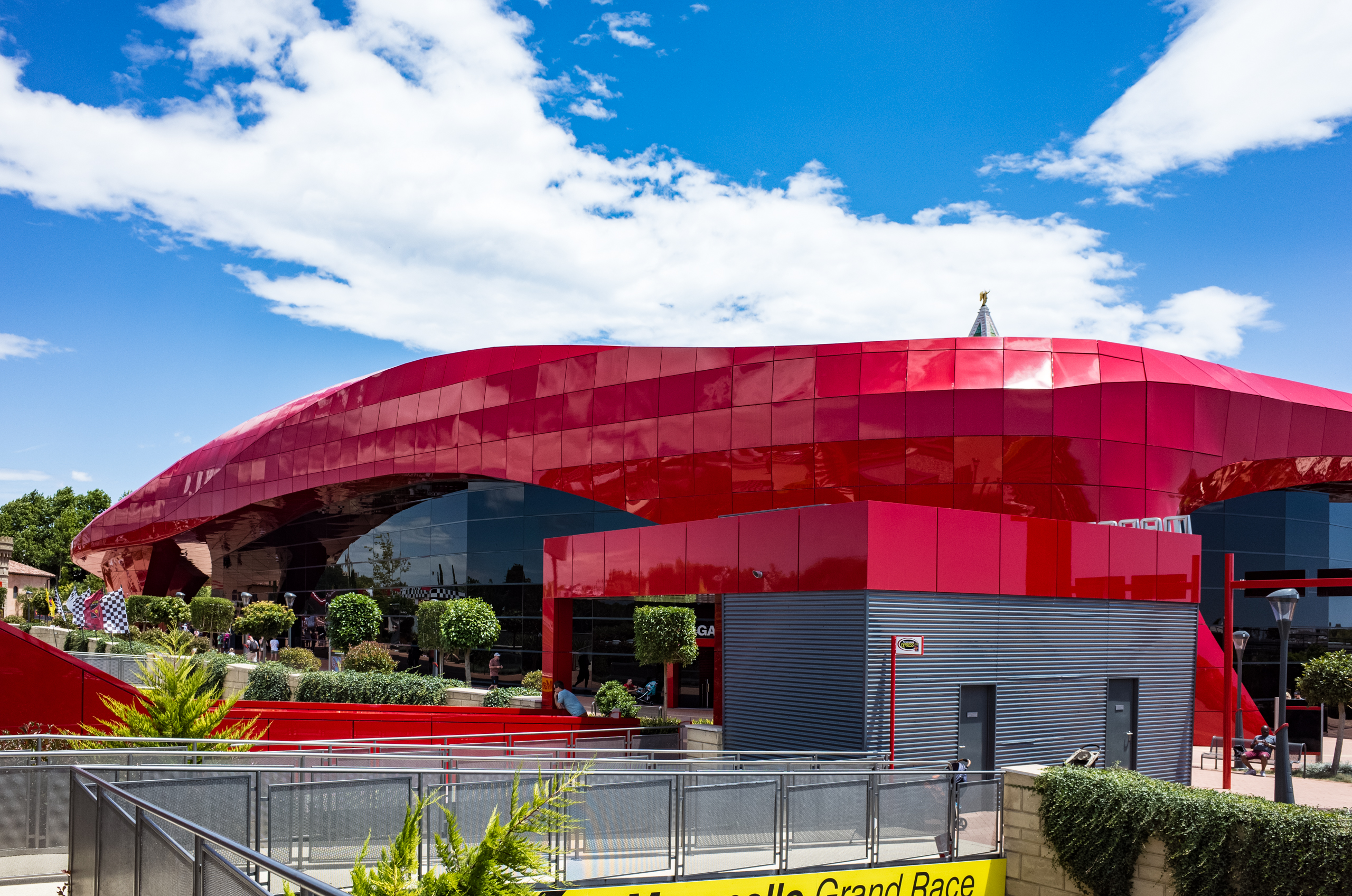 Вот в этом центральном здании расположены два интереснейших аттракциона (один из них - просто супер), а также небольшой музей Ferrari.