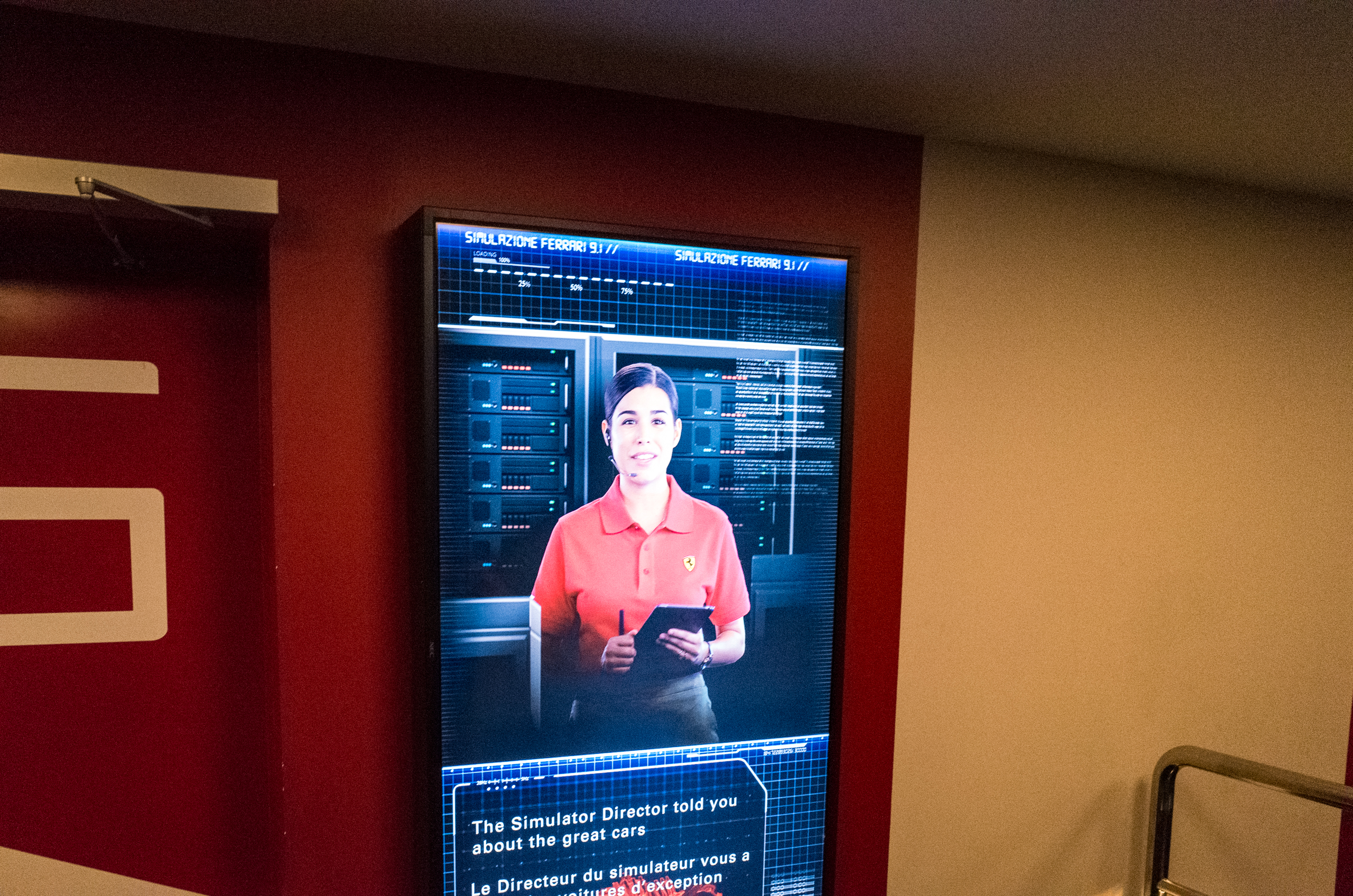 Ну и сели - поехали. Посетители сидят в креслах "Ferrari", которые также раскачиваются и вокруг них что-то происходит, а на экране демонстрируется трехмерный симулятор. Тоже, в общем, вполне захватывающе, хотя Flying Dreams мне понравился заметно больше.