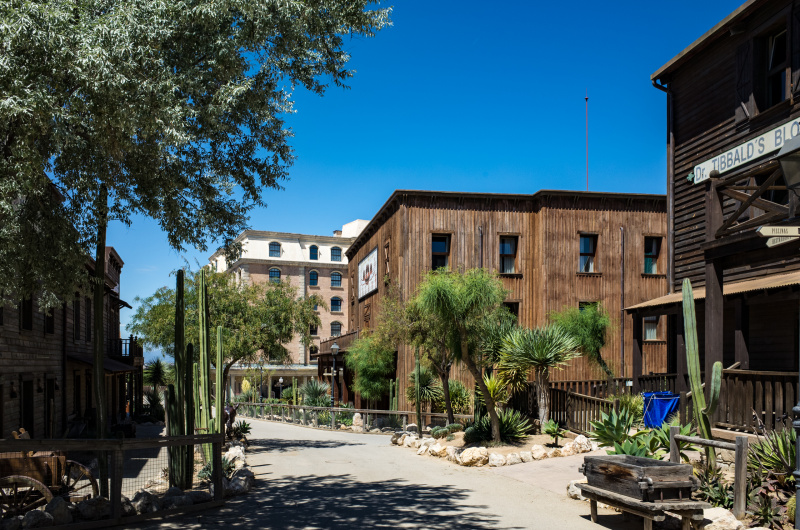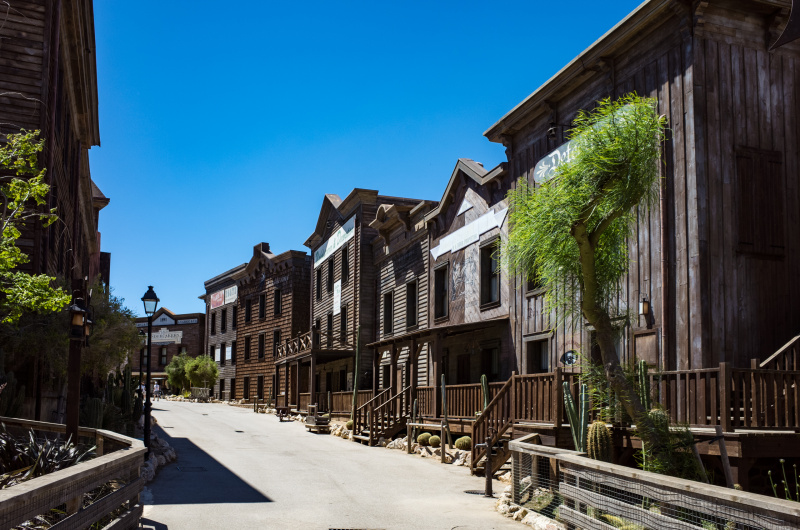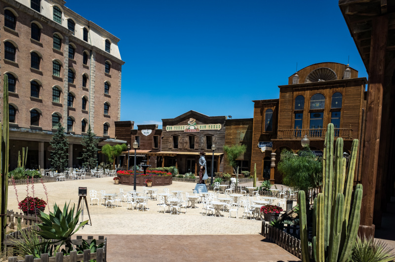 Вся зона, где расположены отели, сделана в стиле Дикого Запада и это смотрится очень забавно.