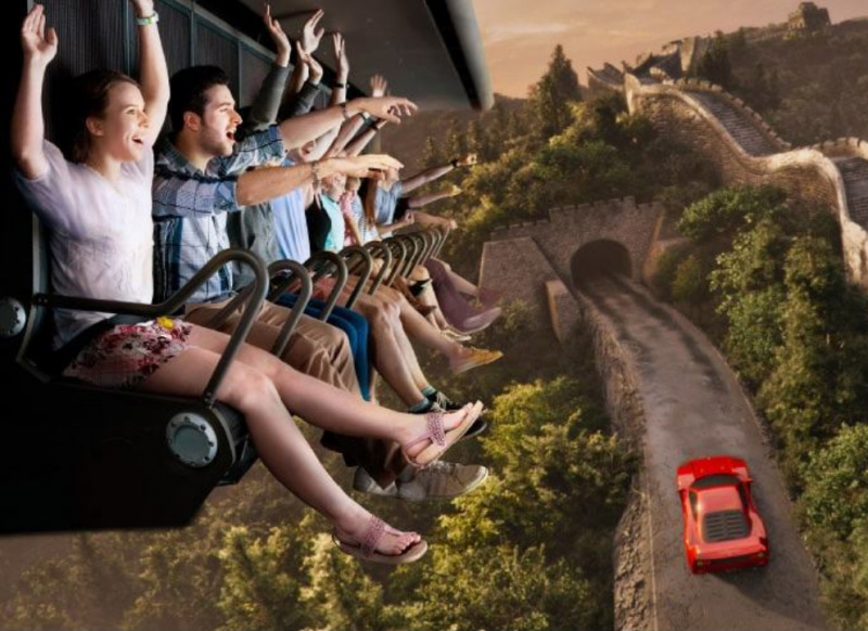 Зал, через который можно зайти по очереди в два аттракциона: Flying Dreams и Racing Legends