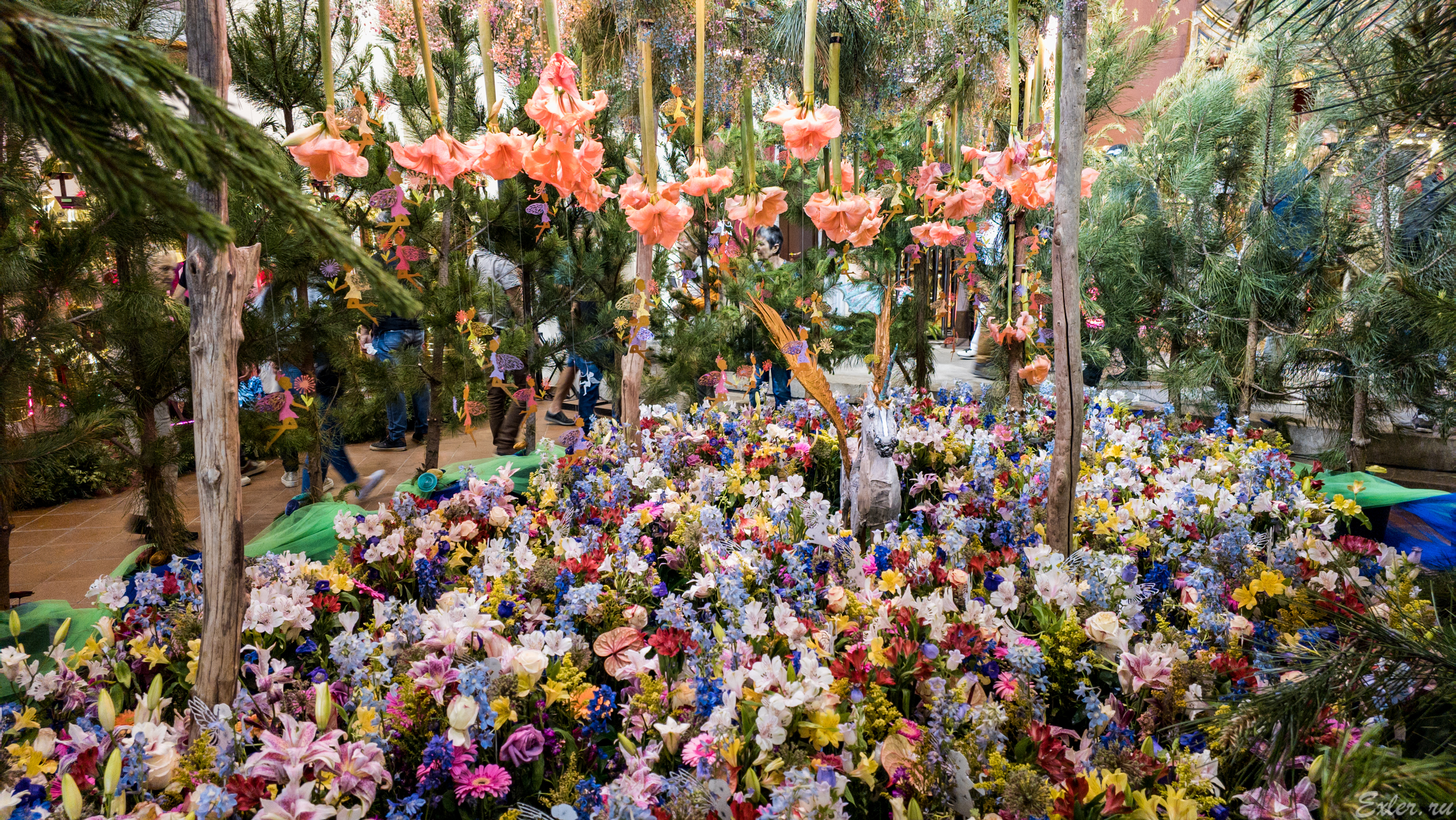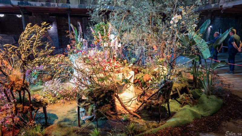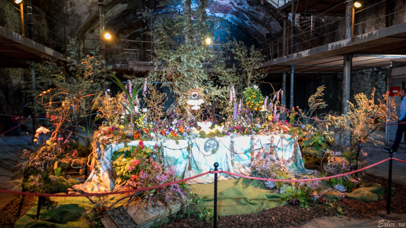 Инсталляции на выставке цветов обычно очень разные. Есть прям очень эффектные, но встречается и полная ерунда из картона и палок, снабженная парой чахлых цветочков, которая должна типа как что-то символизировать. Особенно обидно бывает, когда какое-то время стоишь в очереди (заранее же не знаешь, что именно там будет), а когда достоишься, то понимаешь, что просто потратил время зря.