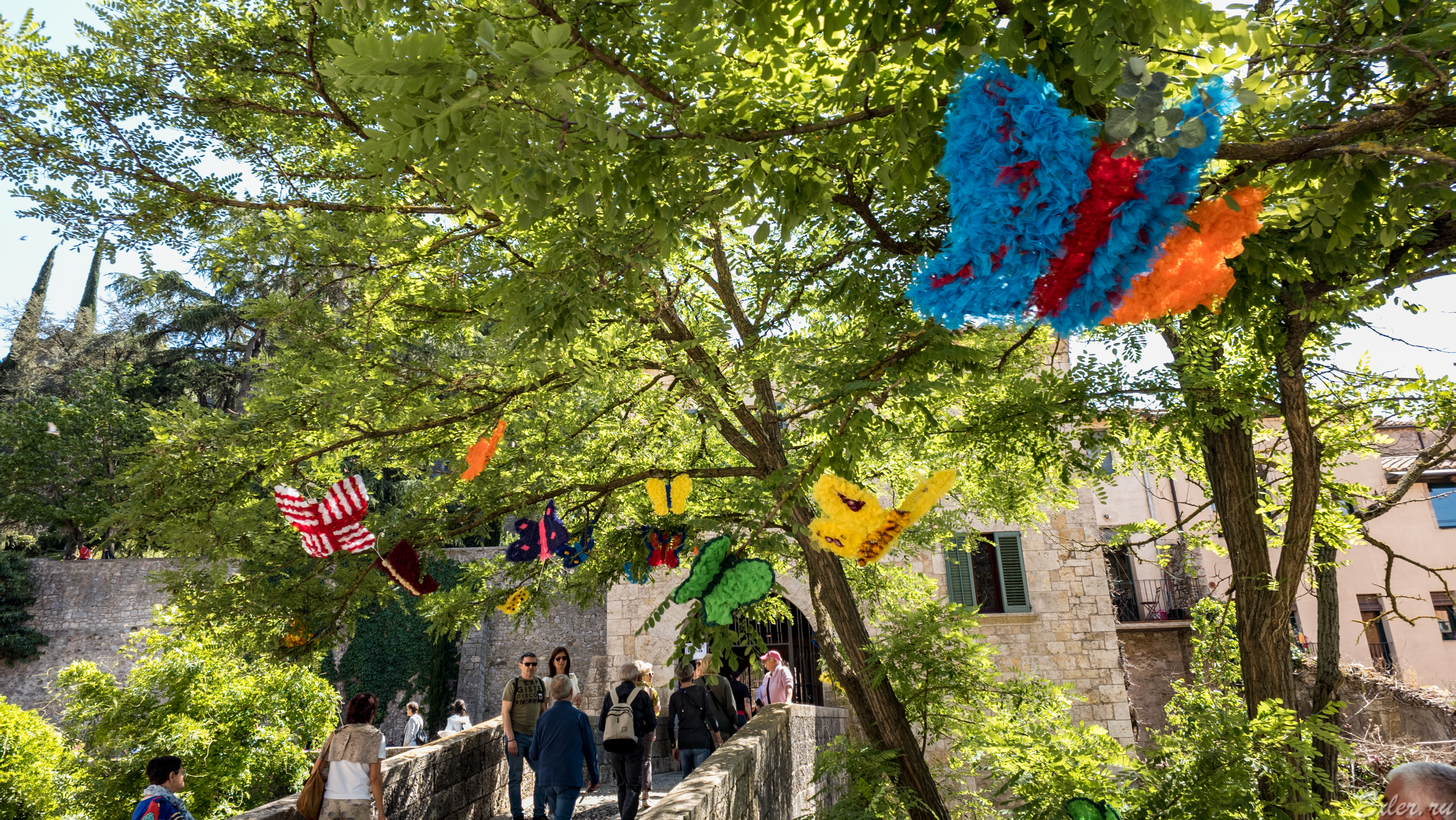 В этом годy мы специально поехали туда в будни в обеденное время: думали, что будет меньше народу. Черта с два, все паркинги забиты, мы еле-еле нашли место где-то в двадцати минутах ходьбы от центра. И народу в центре все равно было полно: мне прям страшно представить, что там будет твориться в выходные. И в этом году в городе даже развели основные людские потоки: в центре во многих местах ограничили проход в одну сторону и организовали движение так, чтобы поток туристов шел в одном направлении без противотока. Правильное решение, конечно.