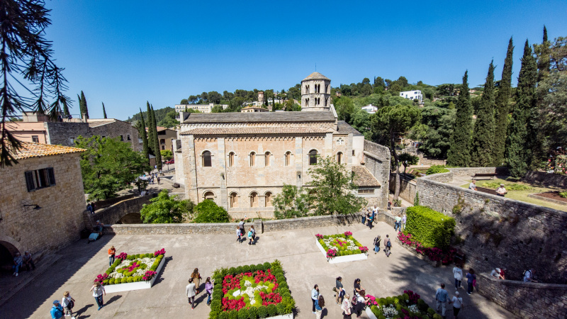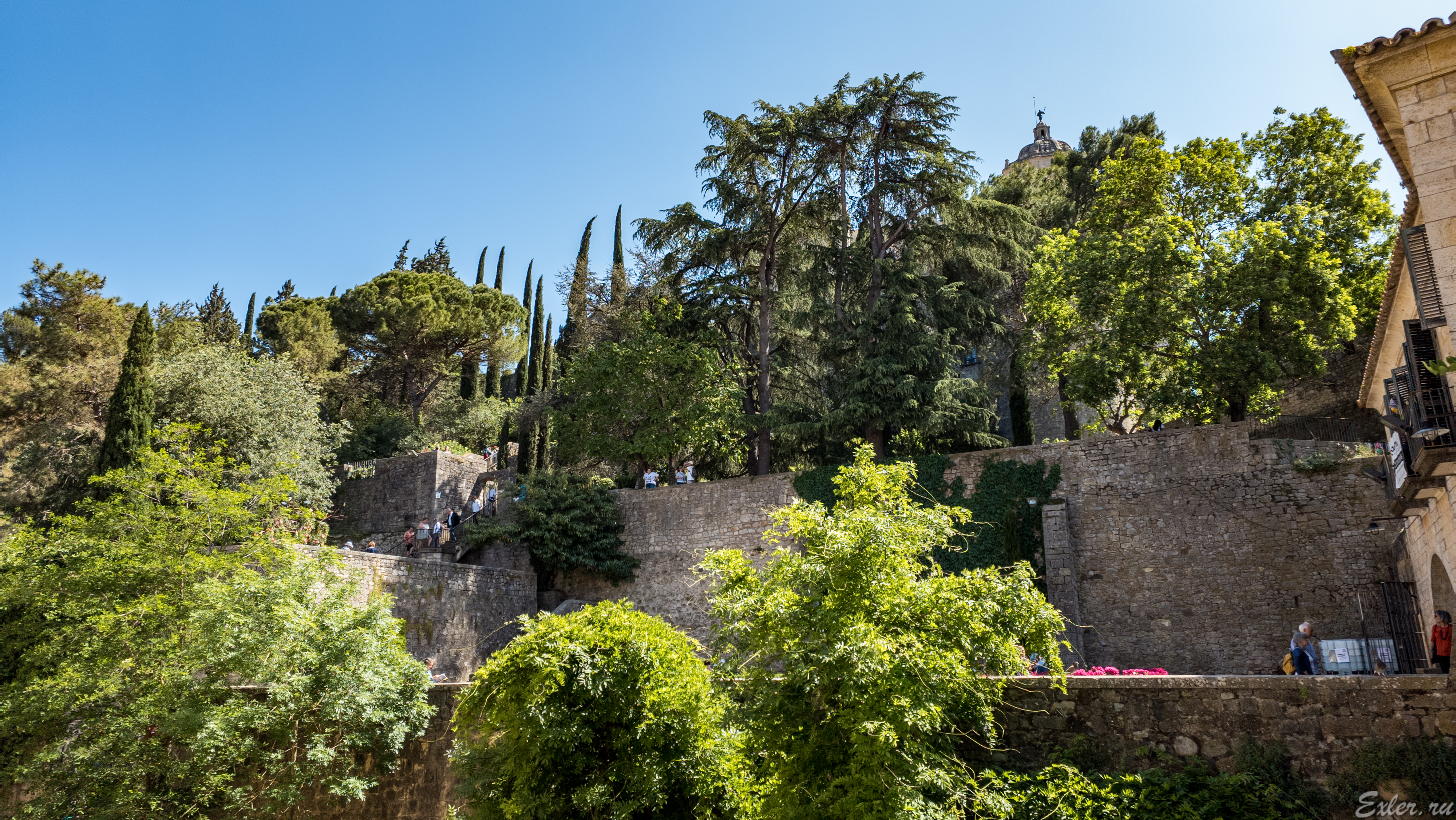 Очень живописный уголок Жироны. Кедры, кипарисы.