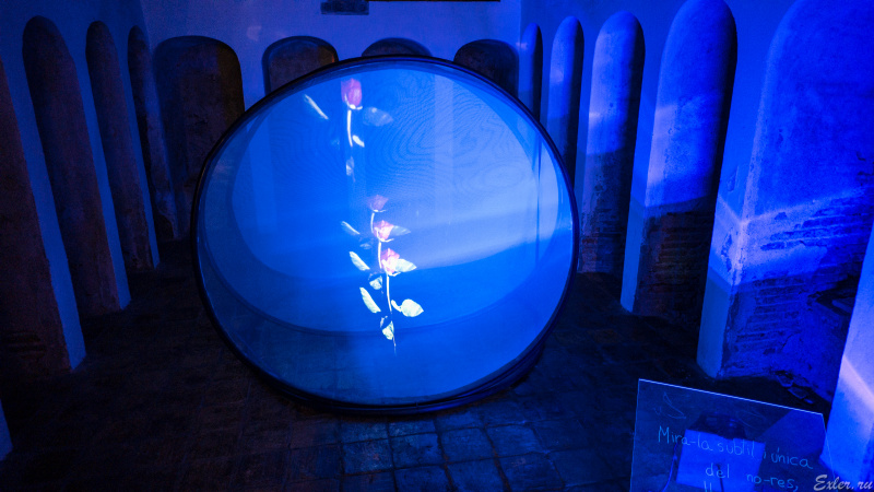 А вот эта инсталляции из серии "дурдом, который что-то там символизирует". На табличке написано, что проецируемый цветок - это не цветок, а символ чего-то там, и свет - это не свет, а символ чего-то там - в общем, оно что-то символизирует - уж ты, мамочка, не сомневайся!