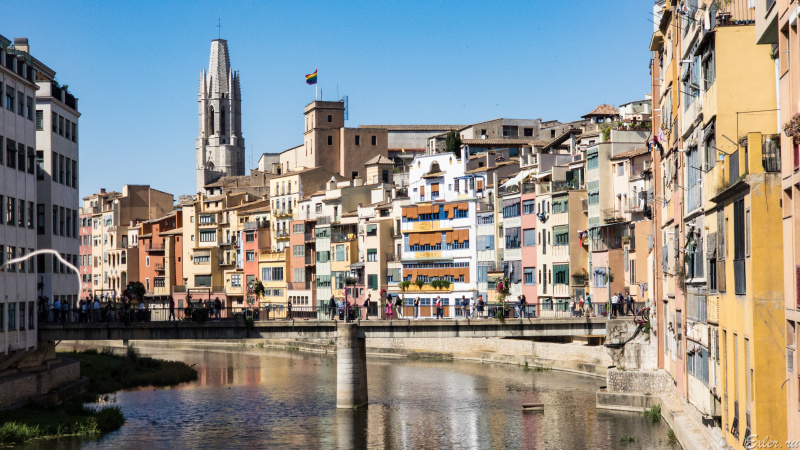 Переходим через мост Понт де Сан-Фелиу - с него открывается вид на старую часть города.