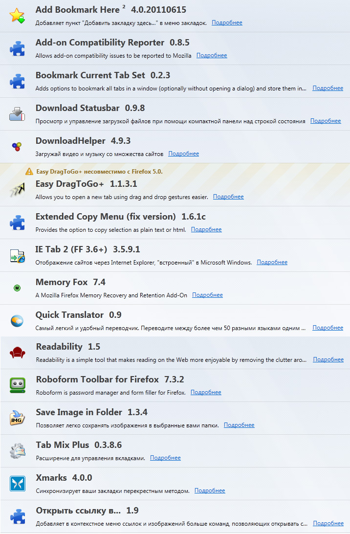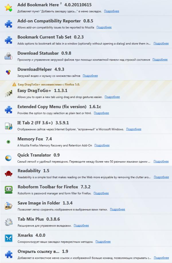 Firefox 5.0 и мои дополнения