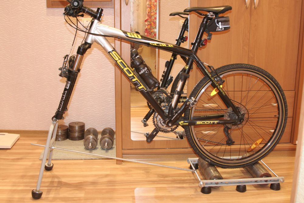 если есть велосипед, то можно взять станок под заднее колесо - www.bike-discount.de
