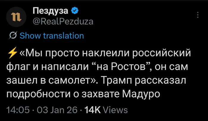 Дональд Трамп заявил 3 января 2026 г.:We'll make the people of Venezuela rich, independent and safe.Мы сделаем народ Венесуэлы богатым, независимым и обеспечим ему безопасность.