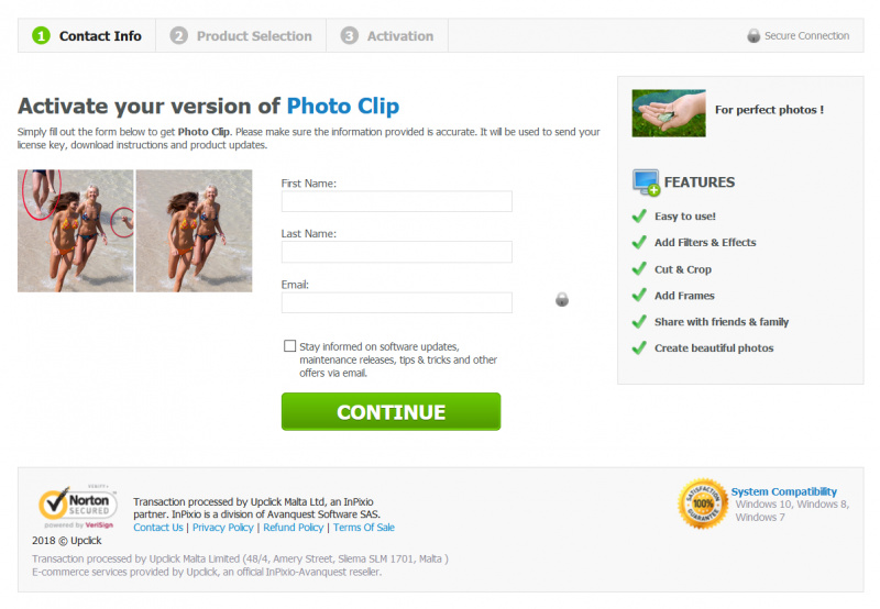 В Facebook очень активно рекламируется графический редактор InPixio Photo Clip 9. Рекламные ролики обещали поразительную простоту и эффективность в убирании лишних объектов из кадра, а также в убирании и замене фона. Ну, решил попробовать - почему нет? Пошел по рекламе на сайт. Скачал что-то, что ожидалось триальной версией. Не сразу дошло, что это просто рекламный ролик, у которого единственная цель - привести пользователя на страницу покупки лицензии. Лицензия там на год, обычная версия стоит €30, продвинутая €40.