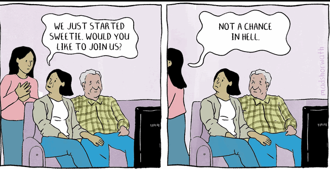 я просто выходил, когда включали телевизор. Или начинал коментировать то, что там показывали, на что родители мне говорили "за что ты так ненавидишь свою страну?"