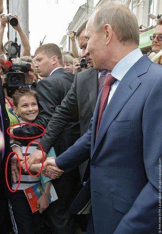 Вот все думают что это путина закрывают от мальчика, а на самом деле как раз наоборот. Уже как минимум один раз охрана вовремя не сработала и мальчик был поцелован в пузико.