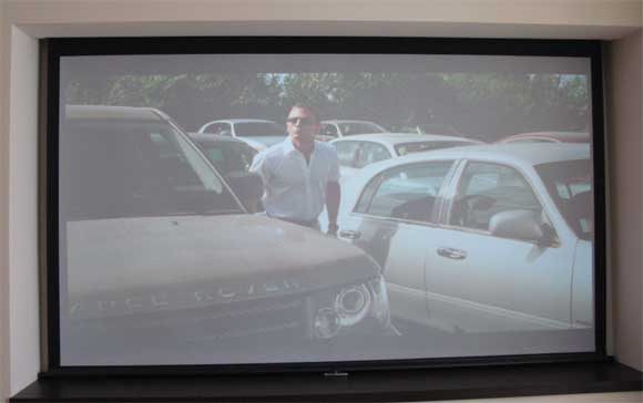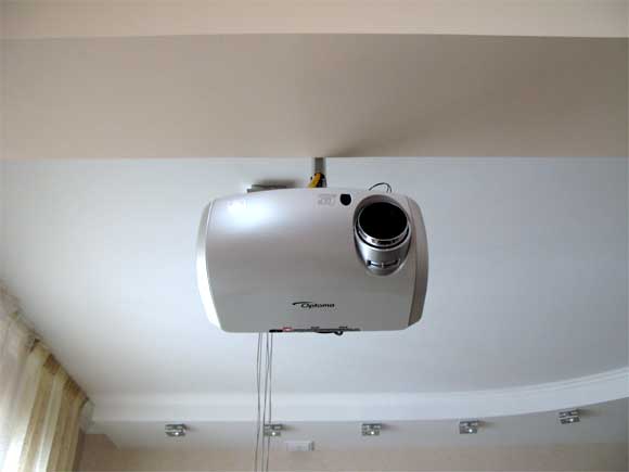 Вверх ногами под потолок он подвесился без проблем (правда, на трех точках, в отличие от Benq, но это не страшно), причем, в отличие от Benq, в моих условиях картинка в экран вписалась более четко (у Benq картинка чуть-чуть вылезала за экран, а здесь остался приличный запас и на увеличение, и на уменьшение).