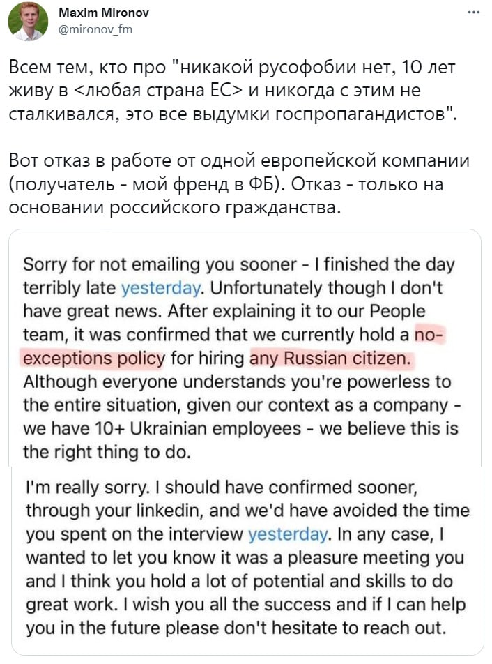 Даже интересно как они будут оправдываться за открытую дискриминацию по поводу гражданства, могли бы сказать "вы нам не подходите" и все, а тут такая подстава..