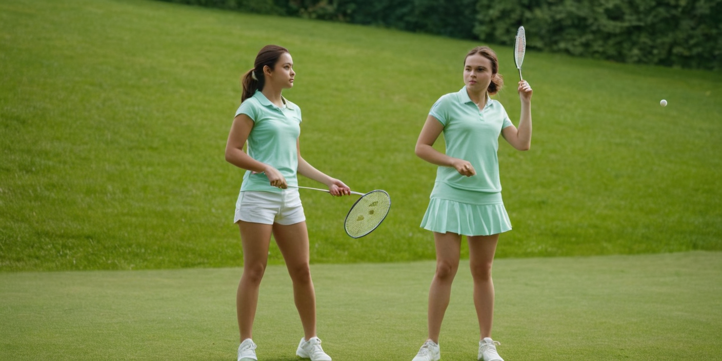 на входе шестипалые бадминтонистки с кривыми ракетками, и на выходе.
