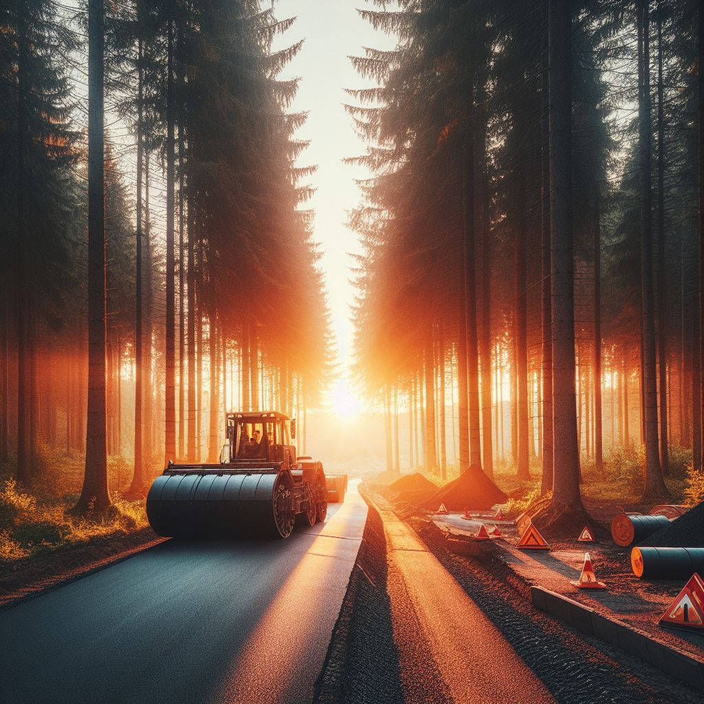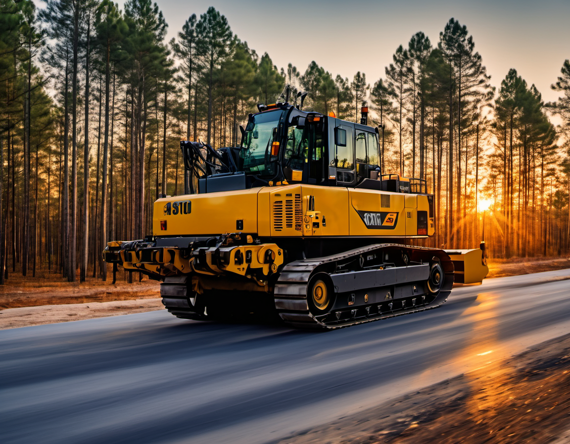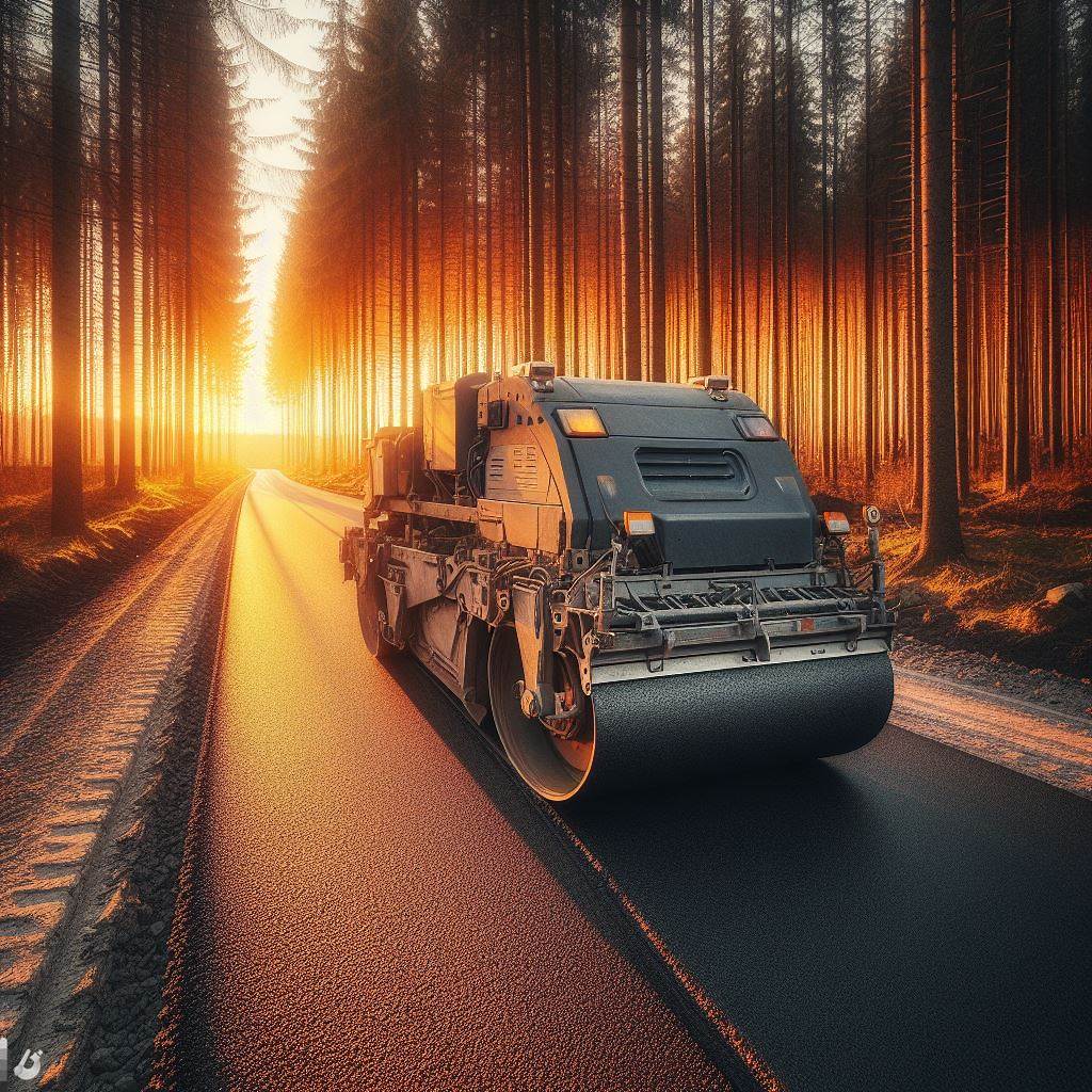 А в фотобанке есть готовое фото " асфальтоукладчик укладывает асфальт на закате на дороге в лесу в котором растут елки"?