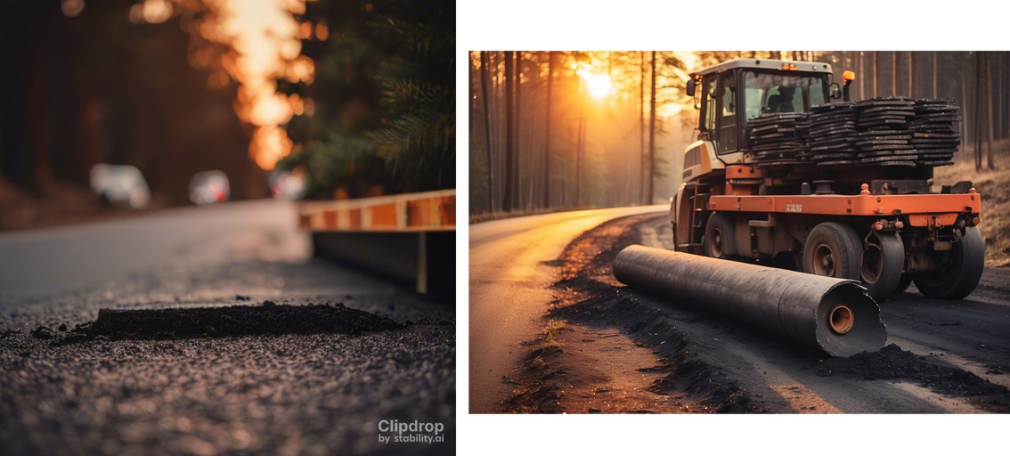 Ну смотрите. Мне нужна иллюстрация: "асфальтоукладчик укладывает асфальт на закате на дороге в лесу в котором растут елки". Вот что выдал мне Клипдроп (первая картинка) и Леонардо (вторая). В первом случае есть елка, закат и асфальт, но асфальтоукладчика вообще нет и лес, прямо скажем, весьма условно обозначен. Акцент иллюстрации почему-то сделан на какой-то выдолб на асфальте, который непонятно зачем. Во втором случае, ура, есть техника, но это вообще ни разу не асфальтоукладчик, у нее серьезные проблемы с задней осью и колесами, (а может с передними, я не могу понять куда этот агрегат едет и вообще что это за агрегат, первый раз вижу такой дикий гибрид погрузчика и катка) и с водителем тоже, он, почему-то в лес смотрит, а не на дорогу. В лесу не наблюдается елок, только сосны. Акцент сделан на какой-то трубе, валяющейся на дороге, причем никакой трубы я совсем не просил. Итого - забавно, но мне все равно потребуется фотограф или фотобанк, потому что если я такое поставлю в публикацию - мне оторвут руки.