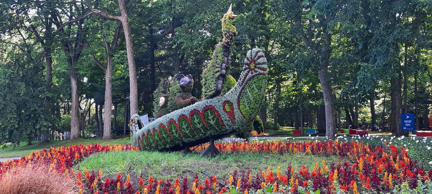 Мозаикультура (Mosaiculture) - это садоводческое искусство создания гигантских скульптур, напоминающих топиарии, с использованием тысяч однолетних декоративных растений, которыми покрывают стальные каркасы.