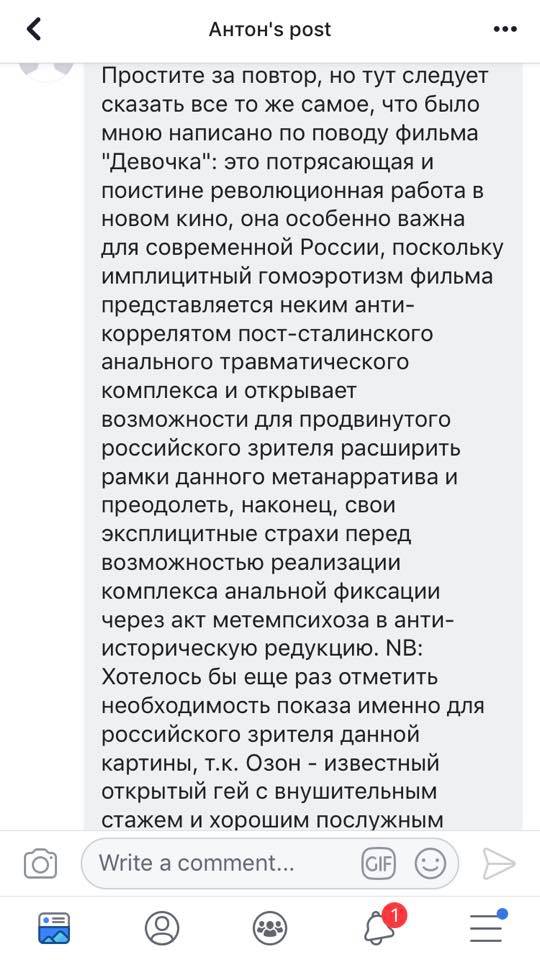 Жду отзыва Экслера - тема анального пост-сталинского травматического комплекса должна быть раскрыта и донесена для аудитории.