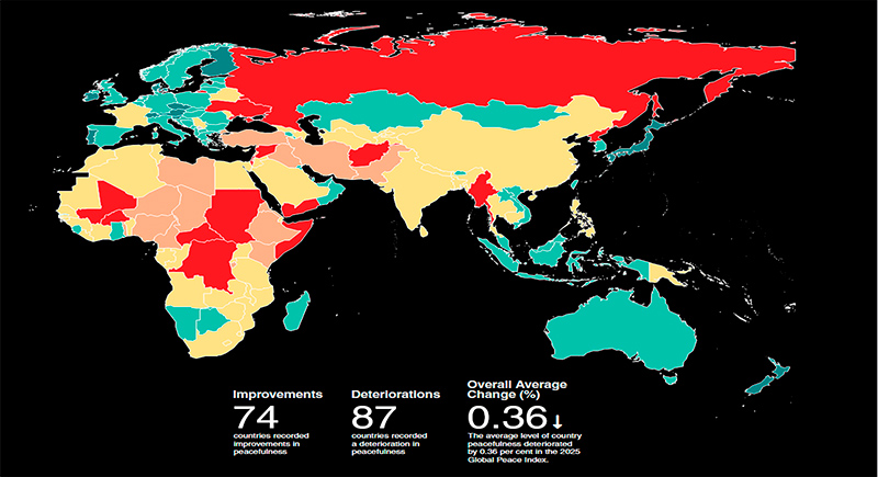 Глобальный рейтинг безопасности 2025 - распределение стран. На сайте рейтинга подробно расписана методология определения индексов для каждой из стран. Там оценивается уровень насилия, уровень милитаризации, наличие внутренних конфликтов и так далее.
