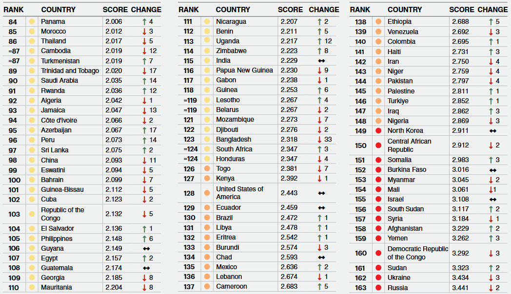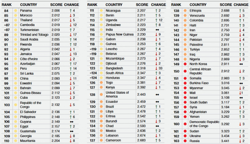 Самый низкий уровень безопасности из всех стран - Россия, которая занимает 163 место. Украина - 162 место, Израиль - 155 место.