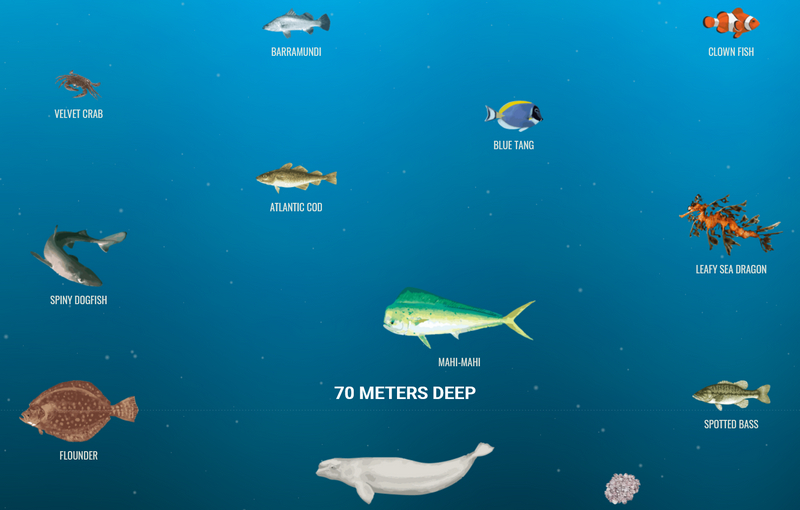 Любопытный проект - Deep sea. Скроллируете окно вниз, погружаясь все глубже и глубже в море, а вам показывают, какие именно обитатели живут на этой глубине (метраж показывается). Меня впечатлило.