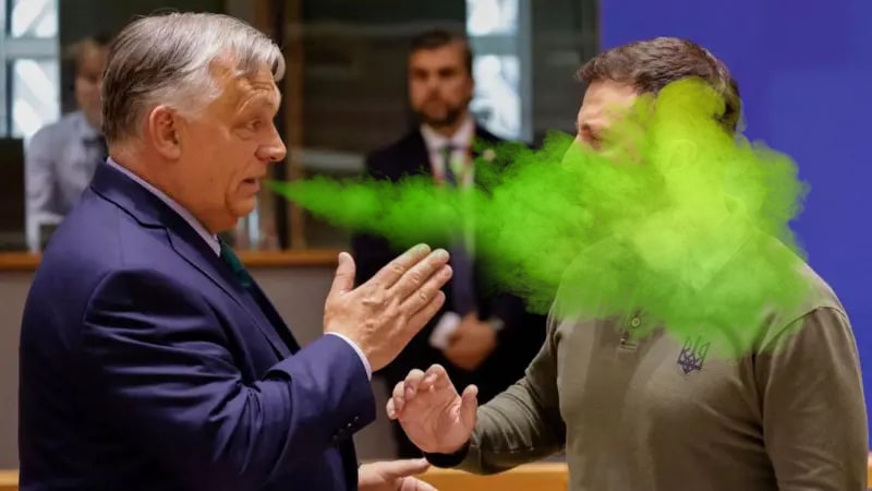Но оказалось, что Орбан прилетал то ли по заданию Путина, то ли чтобы просто выслужиться перед Путиным. Потому что этот сраный "голубь мира", как оказалось, приперся только для того, чтобы предложить Зеленскому просто взять и прекратить сопротивляться - а вдруг Путин на это клюнет и пойдет на переговоры, на которых заявит, что ему нужно отдать половину Украины, уничтожить украинскую армию, пообещать не вступать в НАТО, а тогда Путин, может быть, остановит огонь на время, чтобы потом просто взять всю Украину голыми руками.
