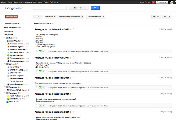 diamant: И ещё: адрес RSS с anekdot.ru не подскажете? А то в тех, что я находил, только по три анекдота в день, а с самого сайта читать на телефоне очень неудобно.