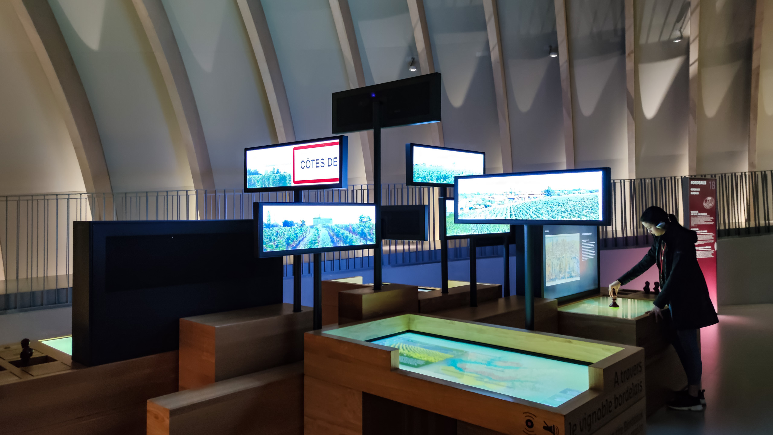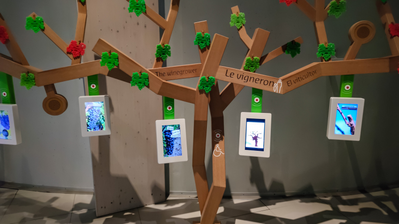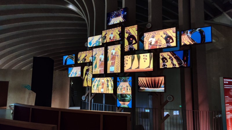 В основном вся экспозиция мониторы, на которых демонстрируется что-то, относящееся к производству вина.