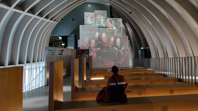 Перед экспозицией на 3-м этаже выдают аудиогиды. Вся программа идет что-то вроде 40 минут. У меня столько времени не было, так что я гида не слушал, а просто посмотрел экспозицию. Она оказалась очень странной.