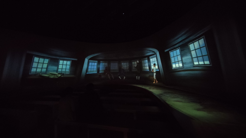 Есть несколько залов, в которых демонстрируются некие исторические события. Вот тут, например, корабль везет вино в Англию.