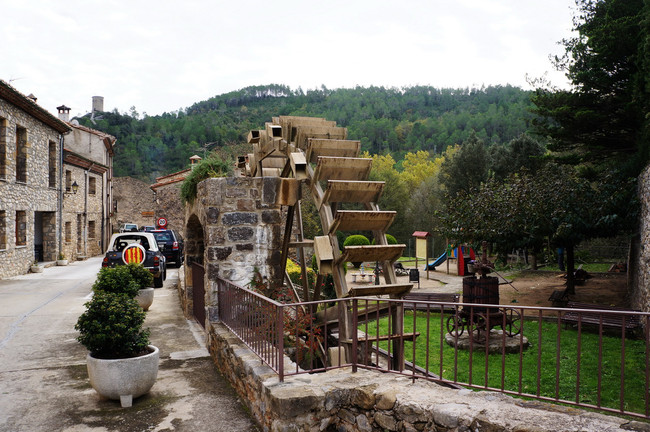Стоит он на речке Muga. (В Испании есть известная марка вина из Риохи, названная по имени этой реки.) Никакой город на реке в старые времена не обходился без колеса, приводимого в движение водой - почему бы не использовать даровую энергию?