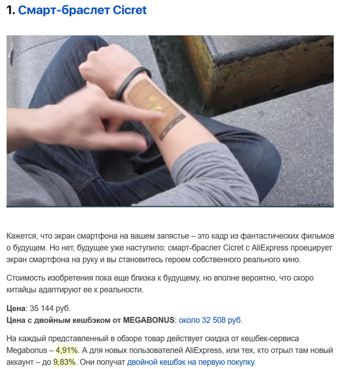 А мы же помним, что такое этот Cicret. Группа жуликов разместила на краудфаундинговой платформе сбор средств на этот "браслет". Его работа демонстрировалась с помощью явно смонтированных видеороликов. Жулики бабки собрали и свалили. (Такое, к сожалению, случается не так уж и редко.) Причем сайт у них до сих пор работает.