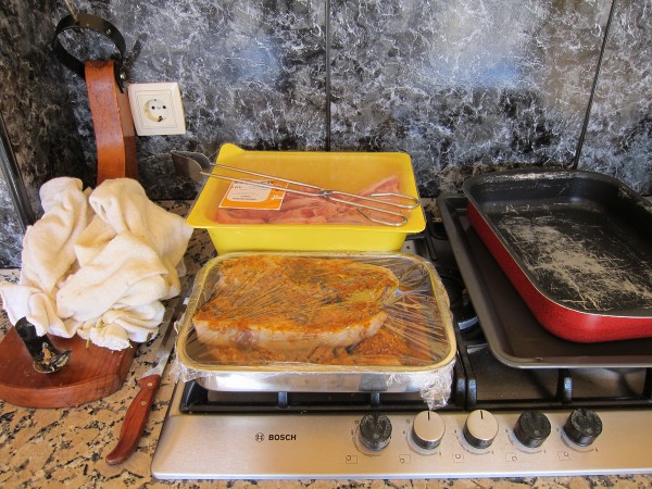 Раскладываем баранину.