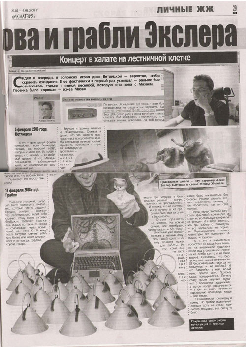 Понадерганы какие-то куски из моего ЖЖ, причем совершенно от балды - например, на черта было в газете публиковать заметку по итогам выбора звуковой карты и усилителя для записи голоса на компе? Кому это интересно вне контекста?