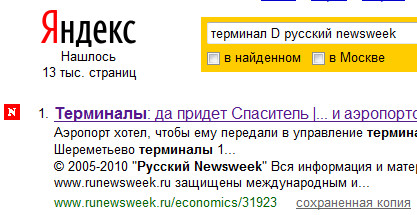 Плюю, иду на "Яндекс", там ввожу "терминал D русский newsweek" и получаю ссылку на статью в первой же строчке.