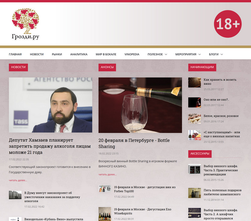 Хорошее издание о вине "Грозди.ру" запустилось в новом дизайне - он адаптирован и под мобильные устройства. Вот состав редакции. Рекомендую всем, кто интересуется вином и виноделием.