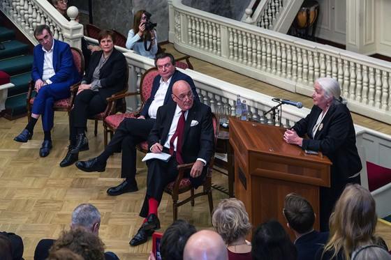 Джентельменов привлекли красные носки Познера, а между тем, субъект слева, в подозрительно сиинем пиджаке с голой ногой, должен буквально ввергать в шок настоящих ценителей стиля. 😄