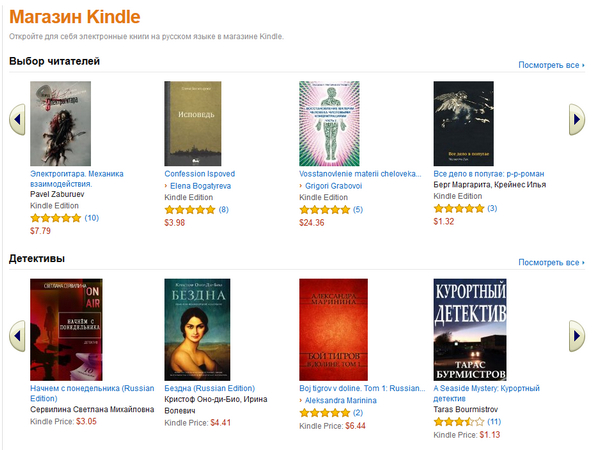 В тему вчерашней заметки о "Литресе" - хорошая новость: в магазин Amazon Kindle пришли книги на русском языке!