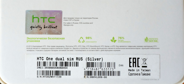Но HTC как-то обошли этот момент. И выпустили телефон на российский рынок, но без этой наклейки. Сделав нормальную русскую прошивку для телефона изначально для китайского рынка. И он действительно официальный продается в основном только у Евросети и самого HTC.